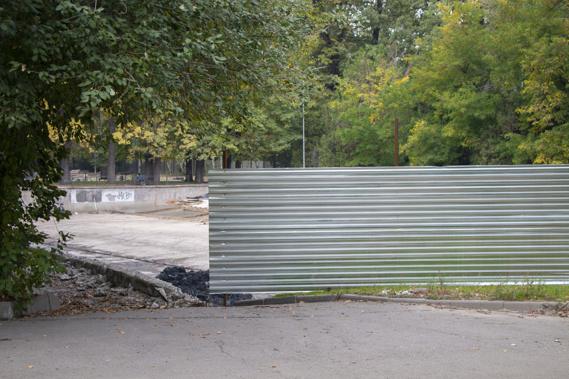 Реконструкция Большого алматинского канала начинается сразу за проспектом Суюнбая. Здесь уже стоит строительный забор. Пройти за него можно только по верхней части набережной. Вероятно, ее специально оставили открытой для пешеходов.