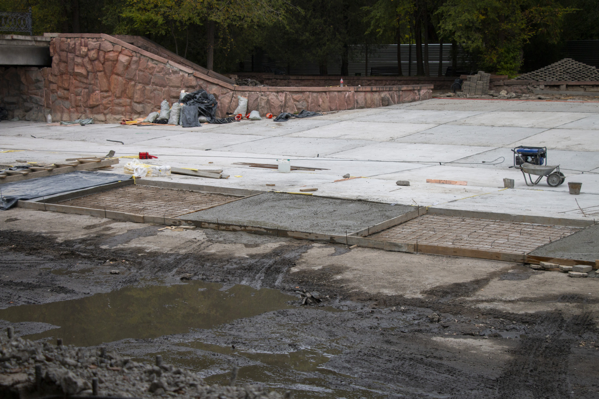 Вероятно, что подтопления сильно осложняют проведение работ. На участке от Сейфуллина до Жансугурова заливка бетона на 26 сентября еще не проводилась.