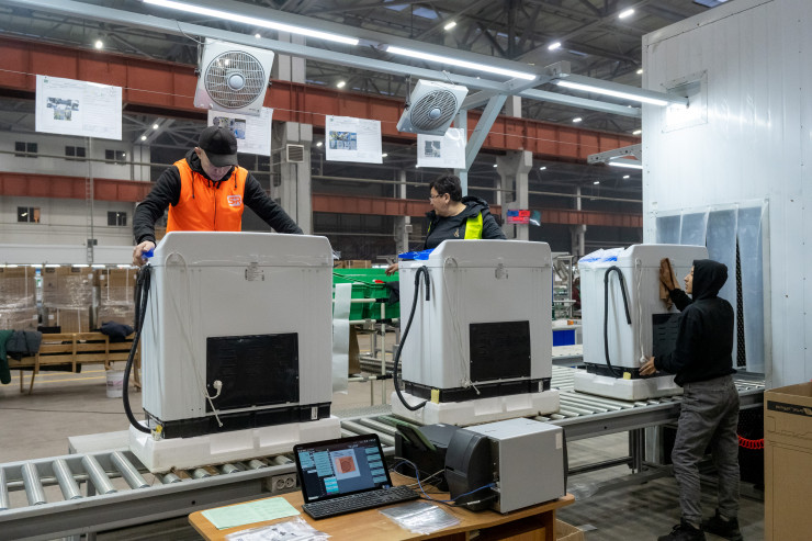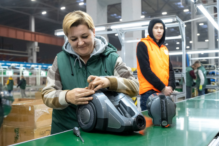 "На линии кухонных вытяжек мы выпускаем семь разных модификаций. Столько же видов есть у телевизоров и стиральных машин-полуавтоматов. У пылесосов и электрических водонагревателей чуть поменьше - по пять. Мини-печи производятся в восьми комплектациях, а кухонные плиты - в 12", - рассказала инженер-технолог линии стиральных машин-полуавтоматов Нургул Жоргембай.