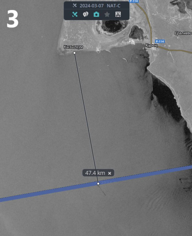 Ранее в Telegram появилось сообщение о двух масляных пятнах в территориальных водах Казахстана. Одно из них выявили в 14 километрах от побережья в Актау, другое - в 48 километрах от побережья в Кызылкуме. Автор канала предположил, что это могли быть сбросы судов, хотя сразу отметили, что пятна сомнительные и происхождение их неизвестно.