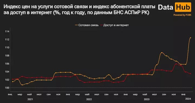 По итогам февраля сотовая связь в Казахстане подорожала сразу на 6,2 процента за месяц. Это самый сильный прирост цен как минимум за последние 13 лет, передает Tengrinews.kz со ссылкой на DataHub.