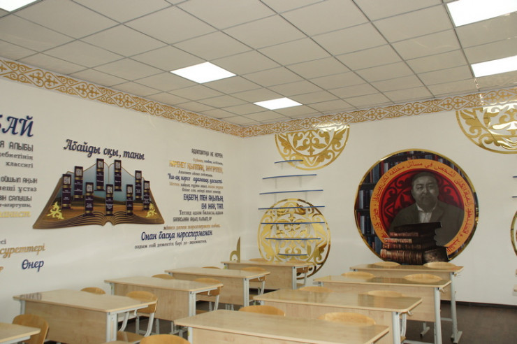 Отремонтировали фойе и коридор. Уже заказали новые интерактивные стенды в стиле хай-тек. Полностью преображен кабинет казахского языка. Вскоре тут установят индивидуальные столы для каждого ученика.
