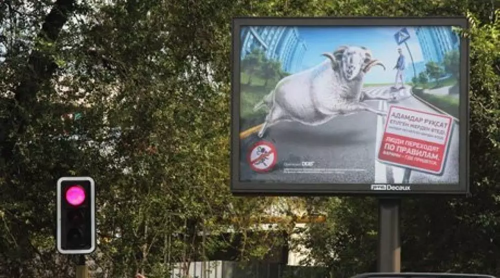Разработчики социальной рекламы про "пешеходов-баранов" в Алматы заявили, что никого не хотели обидеть своими билбордами, передает корреспондент Tengrinews.kz.