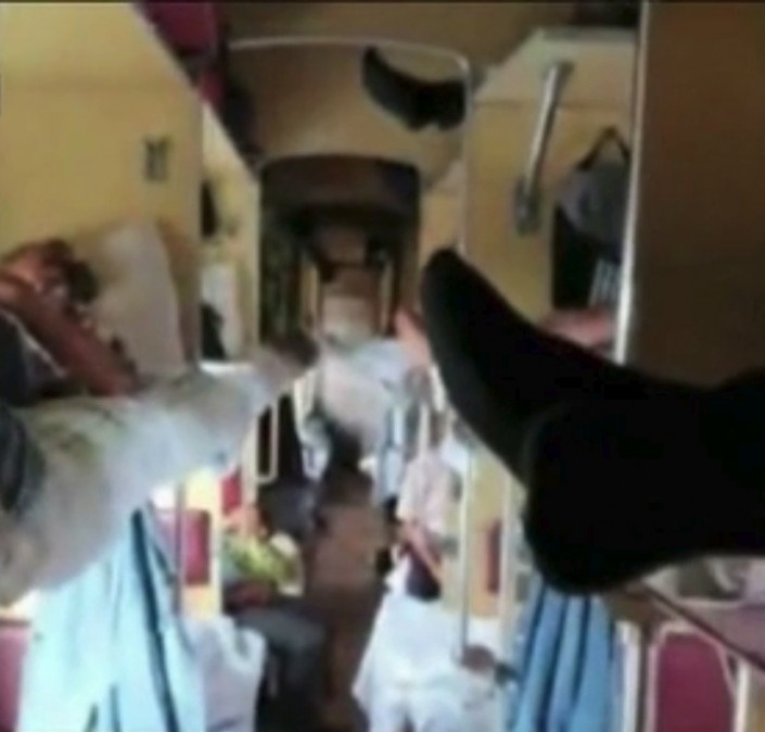 В социальных сетях появилось видео из вагона № 2 поезда. По словам автора видео, в вагоне, рассчитанном на 54 посадочных места, расположились порядка 90 пассажиров. Люди спали на третьих полках, а женщина с ребенком и вовсе ночевала в тамбуре.