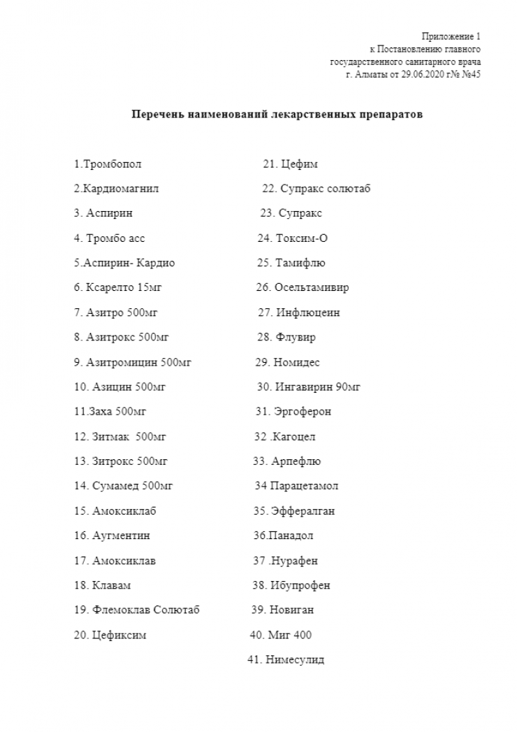 "Постановляю аптечным организациям Алматы ежедневно до 17:00 часов предоставлять информацию о наличии лекарственных средств согласно утвержденному списку.