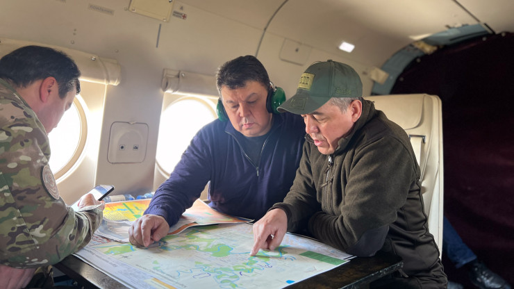 В регионе побывал вице-премьер, заместитель руководителя Республиканского штаба по координации противопаводковых мероприятий и ликвидации последствий паводкового периода Канат Бозумбаев. Он совершил облет Уральска и русла реки Жайык до границы с Россией- сообщает пресс-служба правительства