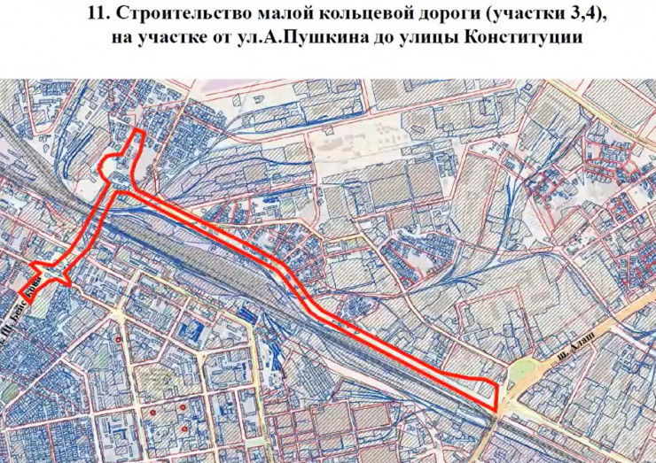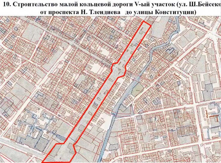 Также запланировано строительство малой кольцевой дороги на участке от проспекта Тлендиева до улицы Конституции. Другая кольцевая дорога появится на участке от улицы Пушкина до улицы Конституции.
