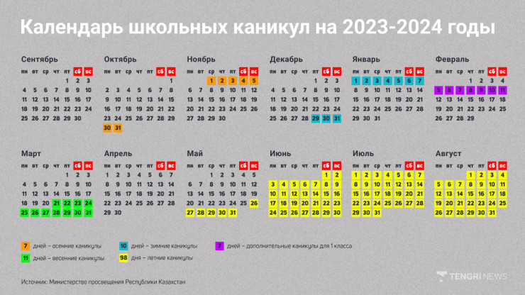 Напомним: в этом году последний звонок в казахстанских школах впервые прозвенел 1 июня. Учебный год в школах страны продлился 36 недель, начавшись 1 сентября и завершившись 31 мая.