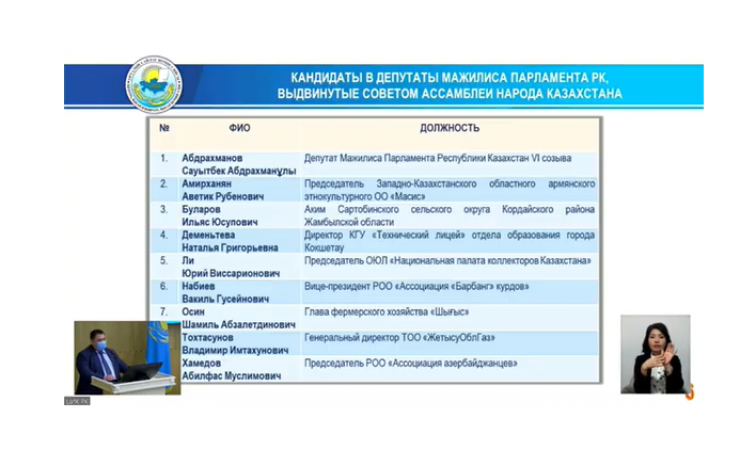 Центральная избирательная комиссия зарегистрировала кандидатов в депутаты Мажилиса Парламента, выдвинутых советом Ассамблеи народа Казахстана, передает корреспондент Tengrinews.kz.