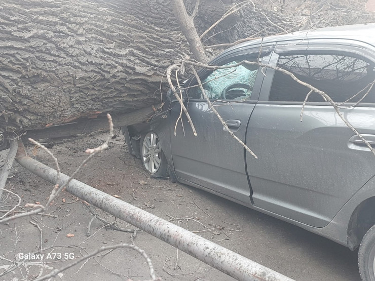 В акимате Алматы сообщили, что по адресу Великолукская 67 в понедельник, 13 марта, был выявлен факт падения дерева (дуб краснокнижный), которое находилось на частной территории и нанесло ущерб двум автомобилям, воротам, газовой трубе.
