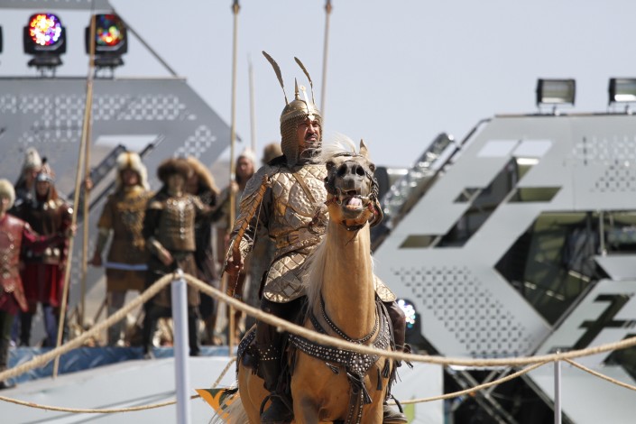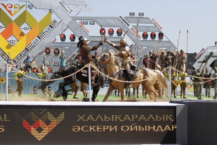 Оригинальной частью программы открытия стала театрализованная постановка. В исполнении танцевальных коллективов, актеров, конно-каскадерской группы и военнослужащих она поведала историю появления и значение казахских стрелков. Продолжилось открытие воздушным шоу казахстанских десантников. А для того, чтобы познакомить иностранных гостей и участников со страной Великой степи, на территории полигона был развернут настоящий этноаул с традиционным бытом, прикладными искусствами и национальными угощениями.