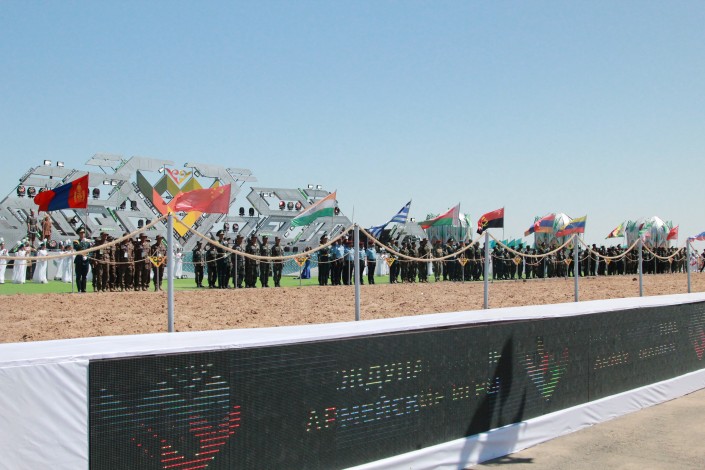 Отметим, что Армейские международные игры стали новым символом международного сотрудничества, обмена опытом, залогом мира и солидарности. Они проходят во второй раз. В этом году Игры объединили более трех тысяч военнослужащих, порядка 120 армейских команд из 20 государств Азии, Европы, Африки и Латинской Америки. 23 конкурса по полевой, воздушной и морской выучке проходят одновременно на 20 военных полигонах России и Казахстана и разворачиваются в акваториях Балтийского, Черного и Каспийского морей.