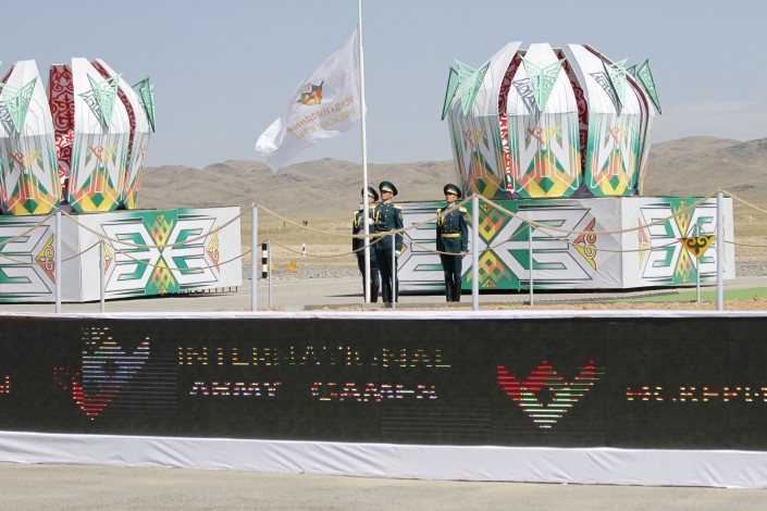 Церемония открытия Игр началась с торжественного марша оркестра Министерства обороны РК и поднятия флага "АрМИ-2016". Официальный старт соревнованиям дал министр обороны Казахстана Имангали Тасмагамбетов.