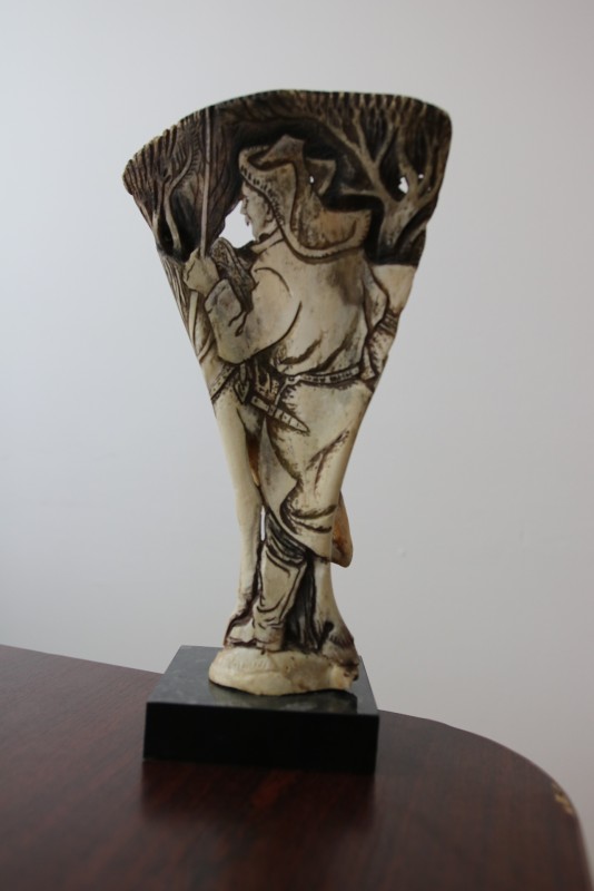 Любой творческой натуре свойственен интерес к познанию и освоению новых видов изделий. Не исключение и Бектас Каримулы. Три года назад он стал изучать искусство изготовления скульптур из костей животных. Не повреждая структуру костей бараньей лопатки и крупного рогатого скота, он создает неповторимые сувенирные изделия.