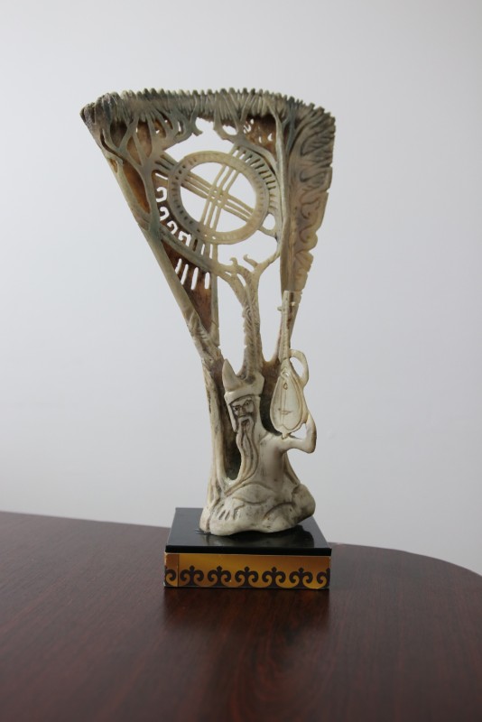 "Согласно нашим древним представлениям, лопаточные кости служили оберегами и из них делали амулеты, - говорит Бектас Каримулы. - Изготавливая скульптуры из лопаточной кости, я хочу передать будущему поколению национальные ценности нашего народа, чтобы они заняли свое прочное место в их сердце".