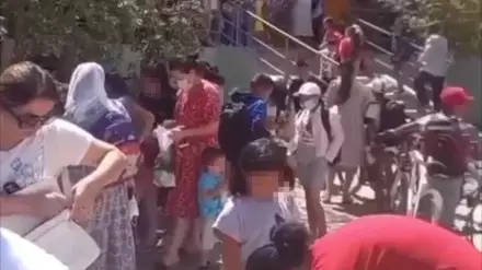 "Это 261-я школа. Вот так на улице раздают учебники. Бардак, что за карантин? Мы что, на базаре? Книги раздают на земле. Дети стоят под солнцем в ожидании. Куда смотрит начальство?" - негодует автор видео.