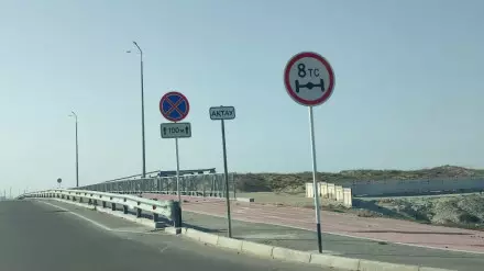 В издание прислали фото, на котором 7 августа запечатлен вышеуказанный знак возле моста над водозаборным каналом энергокомбината. Еще за день до этого он был расположен на трассе Актау – Базы отдыха, на 17-м ее километре.