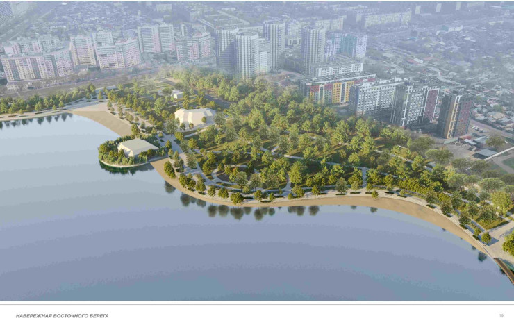 По проекту благоустройства на территории водохранилища появятся пергола у водоема с лотосами, скамейки, урны, фудкорты. Для активного досуга построят скейтпарк с роллердромом, тренажеры, площадку для паркура, велопарк, футбольное поле и детский городок. На территории также предусмотрена установка общественных туалетов и огороженной площадки для выгула собак. По периметру всей территории установят камеры видеонаблюдения. Чтобы обеспечить круглосуточную безопасность на набережной, будут построены два пункта полиции и два спасательных поста.