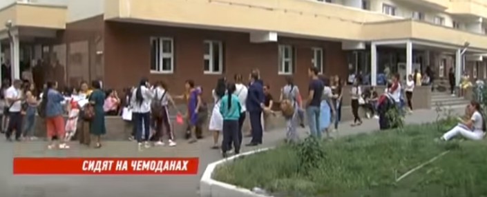 Чтобы получить комнату, им необходимо пройти медосмотр. Однако получить справку не так просто. Врачи университета не справляются с потоком. В итоге своей очереди ждут около двух тысяч человек: с чемоданами прямо у здания университета.