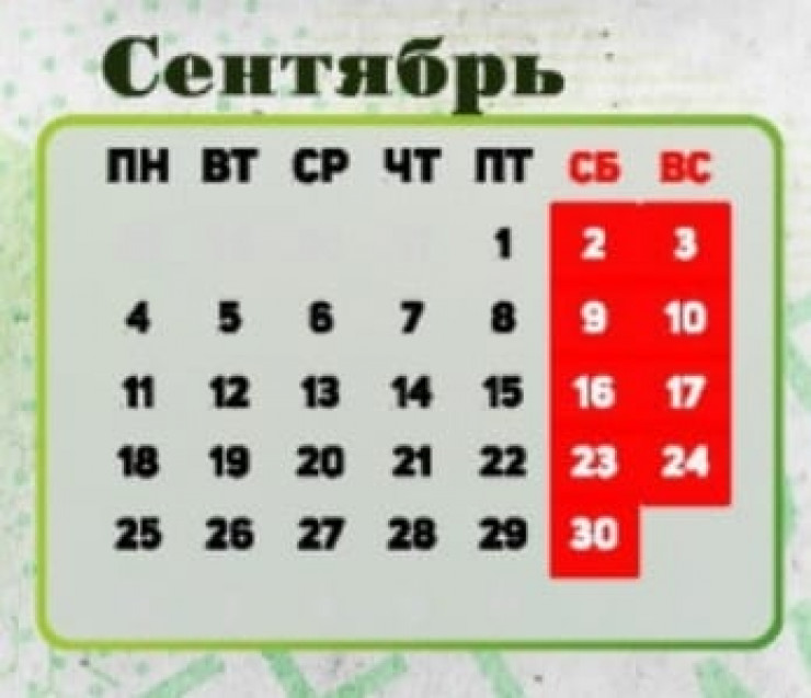 Как казахстанцы отдохнут в сентябре. В первом осеннем месяце казахстанцы отдохнут девять дней, которые выпадают на календарные субботы и воскресенья. Праздничные дни в этом месяце отсутствуют.