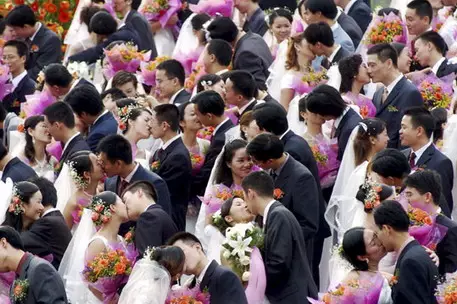 Одна тысяча и 36 молодоженов пожелали скрепить себя узами брака в день, отмеченный тремя одинаковыми цифрами.