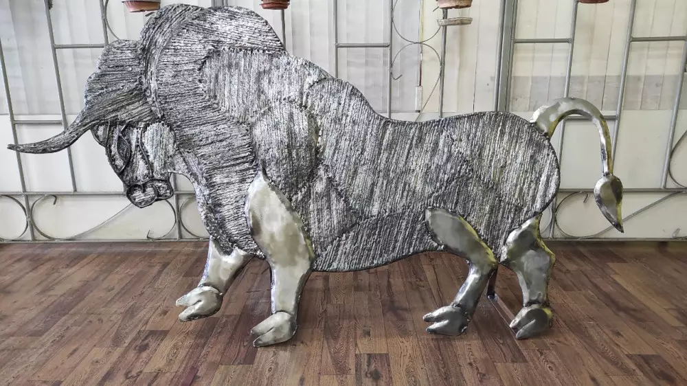 Электрогазосварщик пятого разряда Сергей Еременко изготовил 30-килограммовую фигуру быка из отходов обычной металлической проволоки, передает Tengrinews.kz.