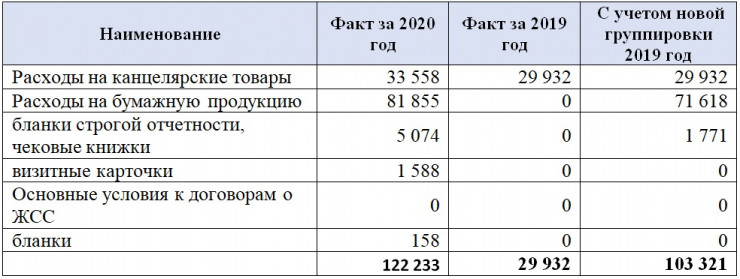"При формировании финансовой отчетности в данную группу расходов включены те затраты, которые были отражены в отчетности 2019 года в группе расходов "материалы". В частности, "расходы на бумажную продукцию", а также "расходы на бланки строгой отчетности, чековые книжки".