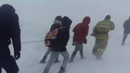 В Акмолинской области сняли на видео группу людей, связанных друг с другом веревкой и бредущих сквозь буран. Таким образом проходила их эвакуация из занесенных снегом авто, передает Tengrinews.kz со ссылкой на пресс-службу КЧС МВД.
