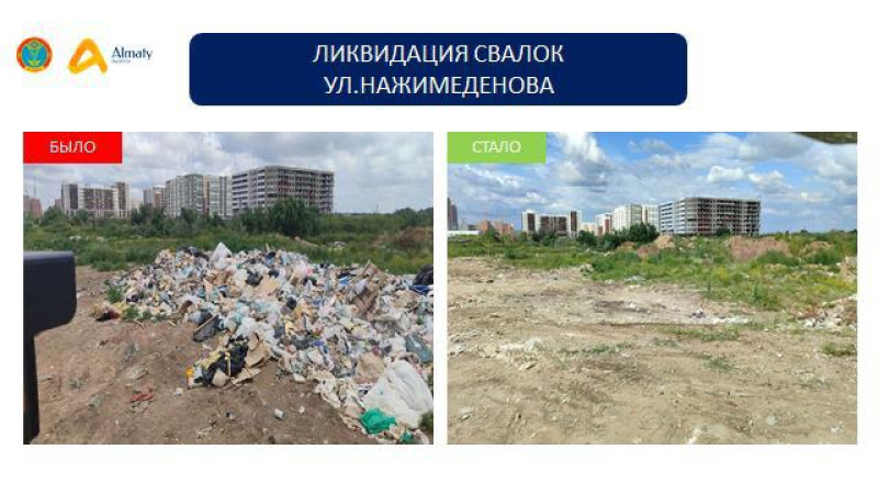 К примеру, по району "Алматы" ликвидирован 61 участок и вывезено 23,5 тысячи тонн мусора (3 357 рейсов).