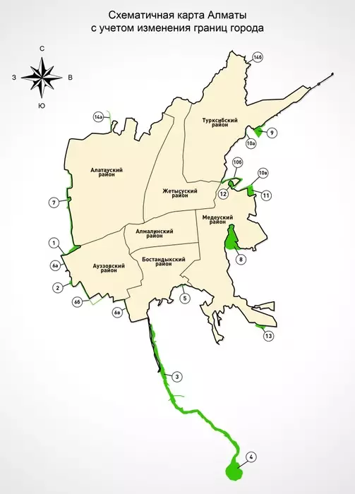 Схематичная карта Алматы с учетом изменения границ города