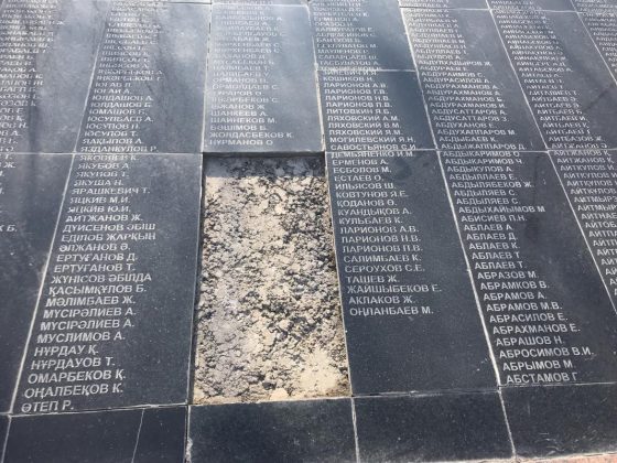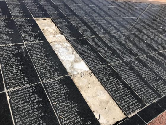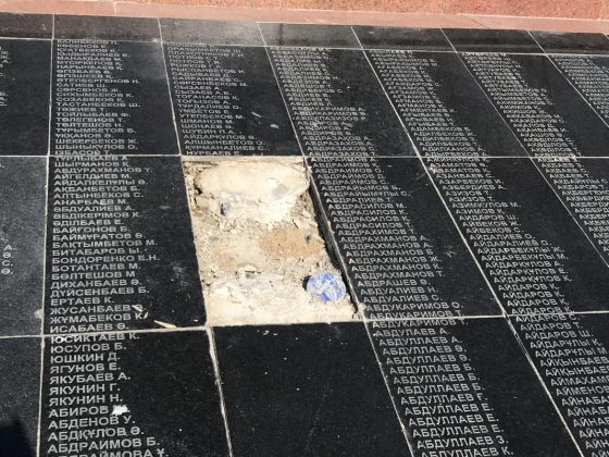 "Похоже, что их не разбили и не раскурочили - остатков от мраморных плит в обозримой близости нет. Куда девались таблички с фамилиями бойцов Советской армии, призванных в годы Великой Отечественной войны из Южно-Казахстанской области, выясняют журналисты", - отмечает издание.