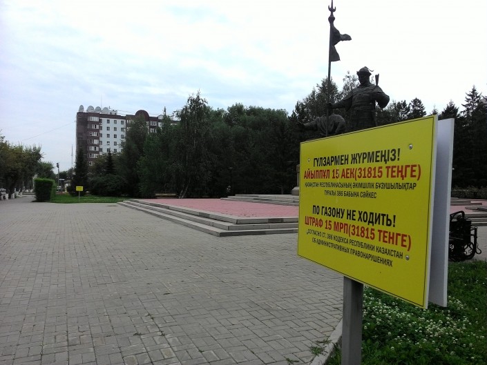 В местной полицейской службе Департамента внутренних дел Астаны объяснили смысл табличек, предупреждающих о высоких штрафах за ходьбу по газону, сообщает Tengrinews.kz.