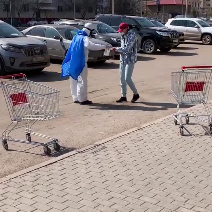 "Многие люди делали вид, что коронавируса не существует. В один из дней, когда мы с волонтерами развозили продукты пожилым людям, ко мне пришла мысль создать некий образ, который мне поможет в распространении правильной информации о коронавирусе. Я позаимствовал у волонтеров этот самодельный белый комбинезон, а в качестве плаща взял обычный дождевик и попробовал выйти в этом на улицу. Повышенное внимание, конечно, заметил сразу", - рассказал астанчанин.