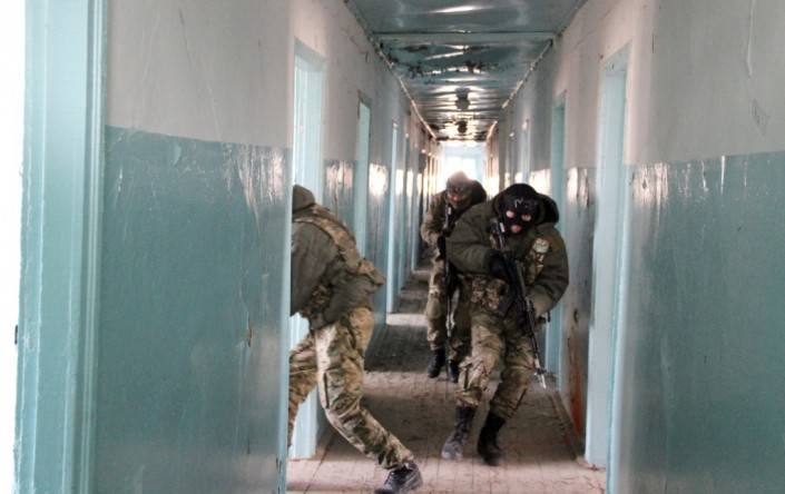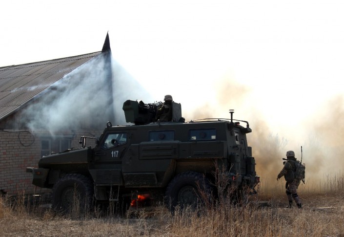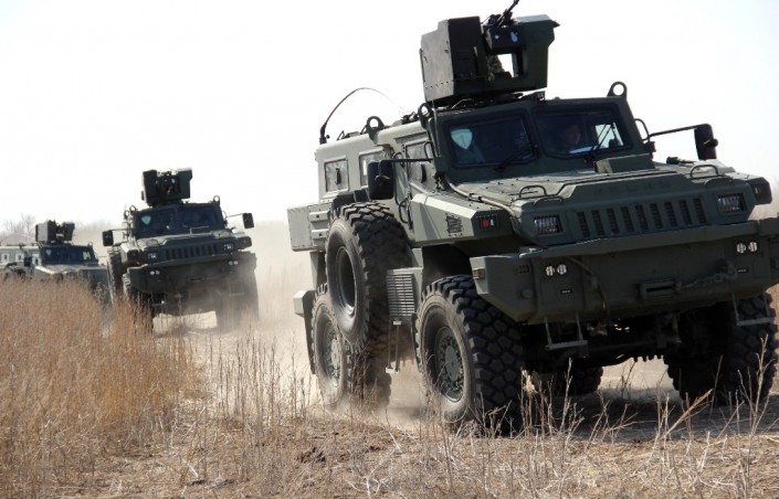 В ходе выполнения учебно-боевых задач спецподразделениями были впервые опробованы поступившие на вооружение отечественные бронированные колесные машины "Арлан".