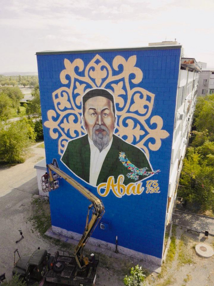 Пятиэтажный жилой дом в микрорайоне Коктем украсил масштабный графический портрет ученого. К нему же авторы подобрали цитату: "Адам мақсатына өзін-өзі жетілдіру арқылы жетеді!" (Человек достигает цели посредством саморазвития).