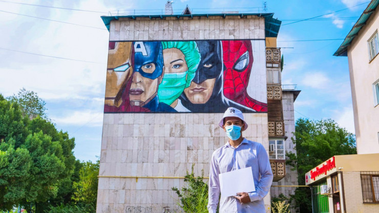 Изобразил ученого молодой художник Еркегали Имангали. Отметим, что ранее он уже рисовал муралы с портретами известных личностей и героев нашего времени, стоящих на передовой в борьбе с пандемией.