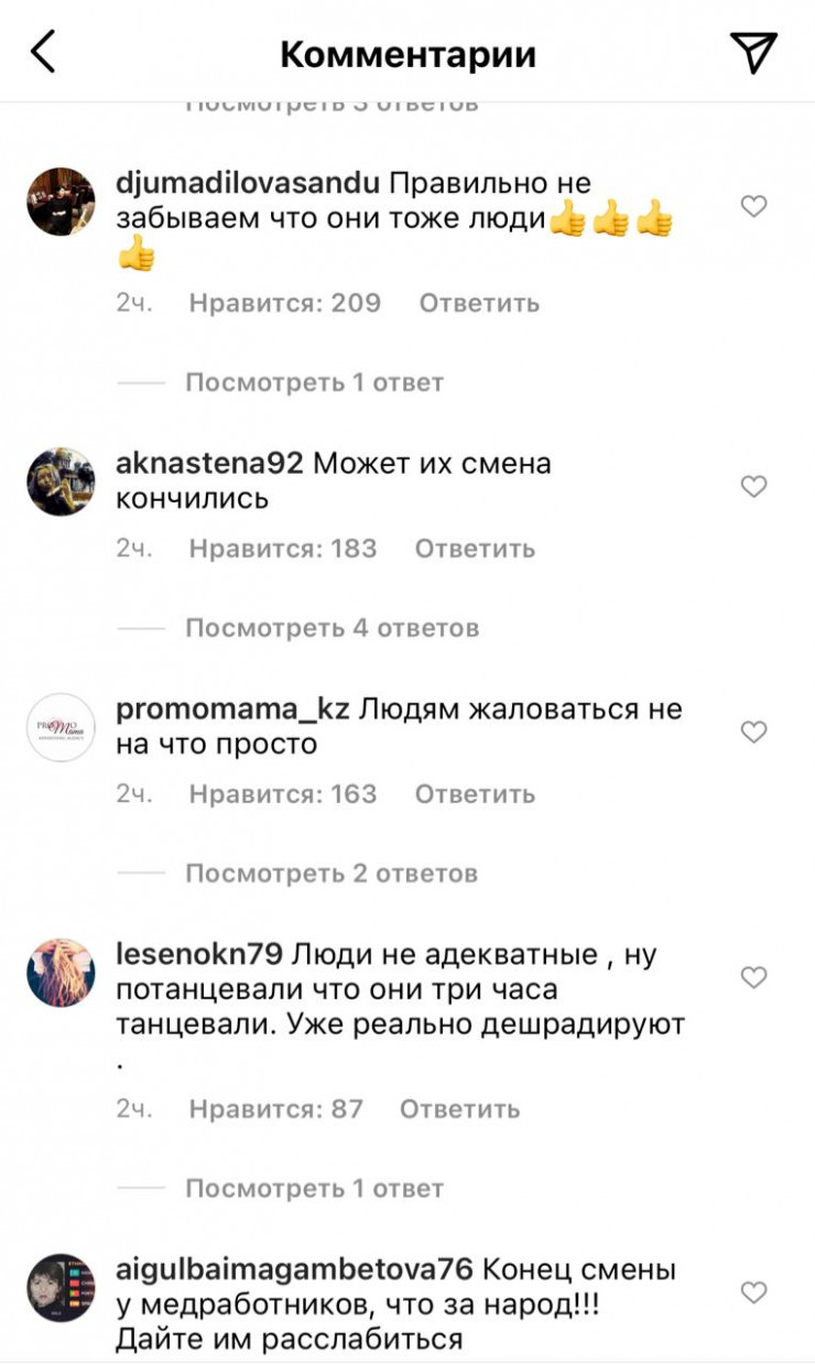 "Может, у них перерыв или обед был. Народ у нас такой, что не ценят труд других. Они видят лишь, как люди отдыхают, а не работают", "Люди неадекватные. Ну потанцевали, не три же часа. Уже реально деградируют".