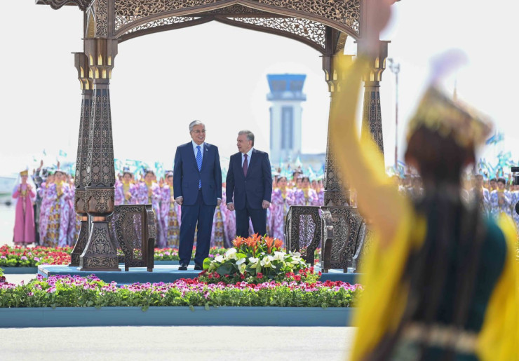 Президенты Казахстана и Узбекистана поприветствовали всех собравшихся.