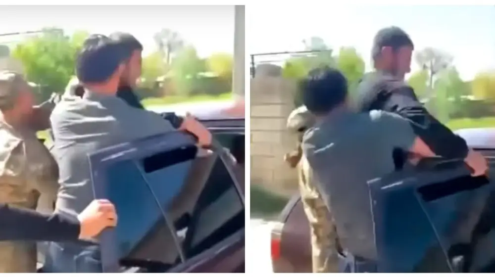 Инцидент произошел в пригороде Тараза. Двое мужчин (один в военной форме, другой в штатском) пытались втолкнуть парня призывного возраста в машину и увезти в военкомат.