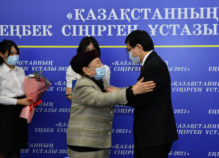 "Мемлекет мұғалім кәсібінің мәртебесі мен беделін көтеруге ерекше назар аударады. Мемлекет басшысының тапсырмасымен алғаш рет "Қазақстанның еңбек сіңірген ұстазы" мемлекеттік сыйлығы бекітілді. Еңбектеріңіз бен жас ұрпақ тәрбиесіне қосқан үлестеріңіз үшін алғыс айтамын. Марапатпен құттықтап, сіздерге денсаулық, амандық және талантты оқушылар тілеймін!", - деді Асхат Аймағамбетов.