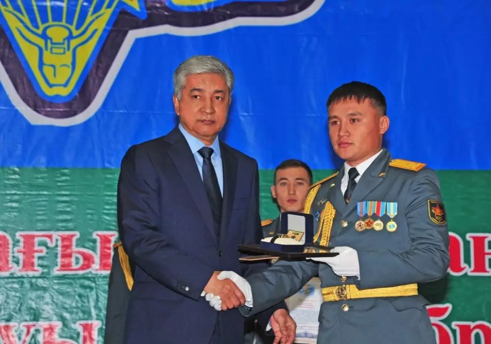 Из рук главы оборонного ведомства РК молодые офицеры получили грамоты, ценные подарки и нашивки "Үздік маман командир".