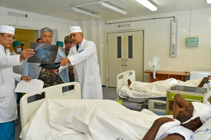 Тасмагамбетов навестил военнослужащих из Анголы, пострадавших во время ЧП в Отаре Фото пресс-службы МО РК.