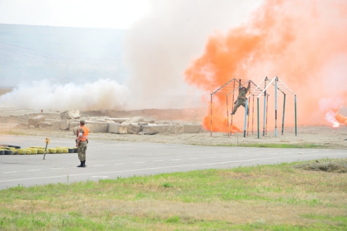 Министр обороны проследил за ходом строительства трассы для проведения конкурса артиллеристов протяженностью 2 километра с препятствиями - "змейкой", минно-взрывным заграждением, курганом, колейным мостом. Также трассу для проведения конкурса снайперов с элементами тропы разведчика и рубежами для стрельбы из снайперской винтовки, пистолета и для метания гранат.