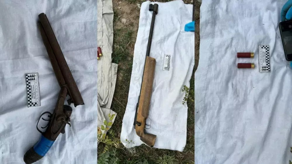 Первый обнаружили в поселке – гладкоствольное ружье (обрез) и три патрона. Второй тайник был найден напротив кладбища Кенсай. В результате чего было изъято гладкоствольное ружье ИЖ, гладкоствольное ружье ТОЗ, ружье УРАЛ 6-1 и два патрона калибра 16 мм.