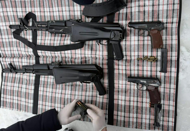 "Изъято 4 автомата Калашникова и 3 магазина к нему, пистолет Макарова, карабин, охотничье ружье, а также 65 патронов различного калибра. По предварительным данным, найденное оружие было похищено во время январских событий", - говорится в сообщении.