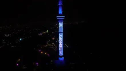 Телебашню “Коктобе“ в Алматы окрасили в цвета The Spirit of Tengri, передает Tengrinews.kz.
