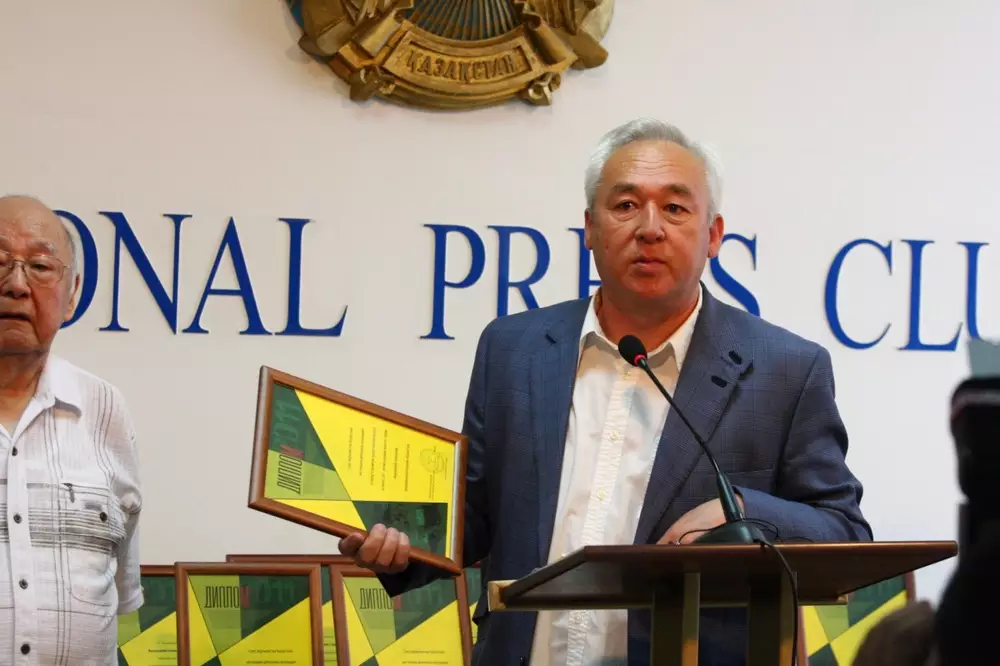 "Очень приятно вручить вам эту награду, - сказал председатель Союза журналистов Сейтказы Матаев генеральному директору холдинга "Алаш Медиа Груп", в который входит портал Tengrinews.kz, Батыру Казыбаеву. - Обычно мы ее вручаем газетам и впервые информационному сайту. Интернет стремительно развивается, работает уже наравне с традиционными СМИ".