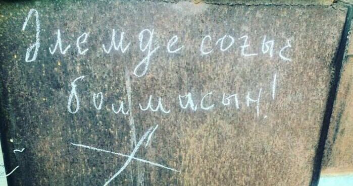 Надпись, сделанная детьми на одной из бетонных стен в Актобе.