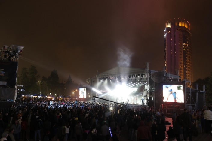 Если вы сегодня далеко от Алматы и не можете прийти на open-air-площадку перед Дворцом Республики, вас ждет качественная онлайн-трансляция c многоканальным звуком, которую можно будет посмотреть на сайте Tengrinews.kz и в социальных сетях проекта The Spirit of Tengri.