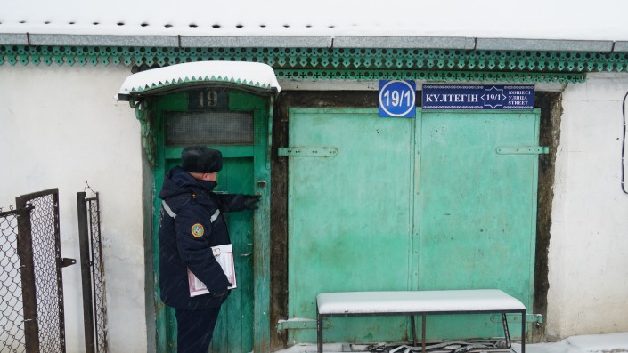 Печь в доме топит 90-летний Леонид Боровик. Сотрудник ДЧС, обходящий дома после недавней трагедии в Астане, предупредил пенсионеров, что пожар может произойти из-за сушки вещей над печью.